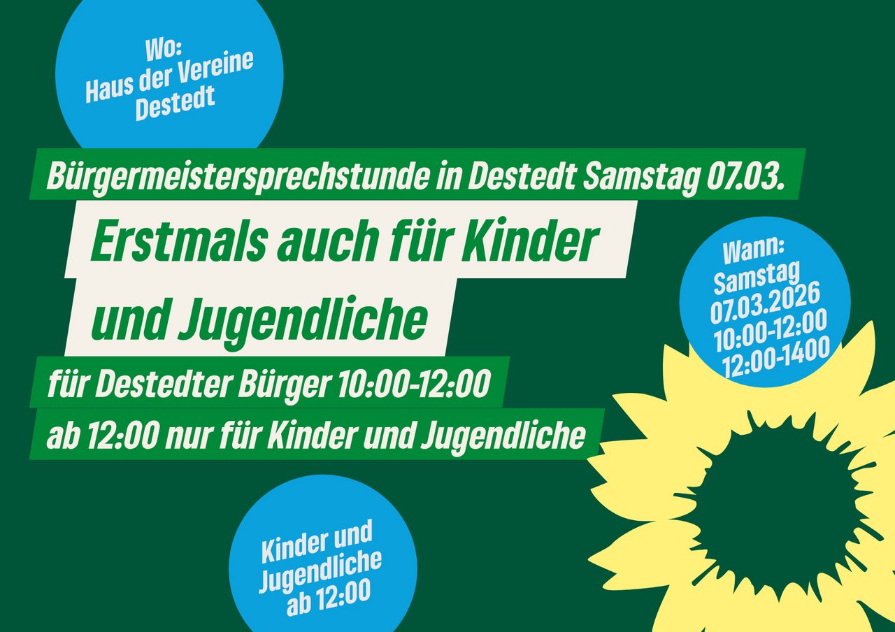 Destedt. Die nächste Bürgermeistersprechstunde findet am Samstag, 07. März 2026, von 10.00 bis 12.00 Uhr im Haus der Vereine (Destedter Hauptstr. 2) statt...